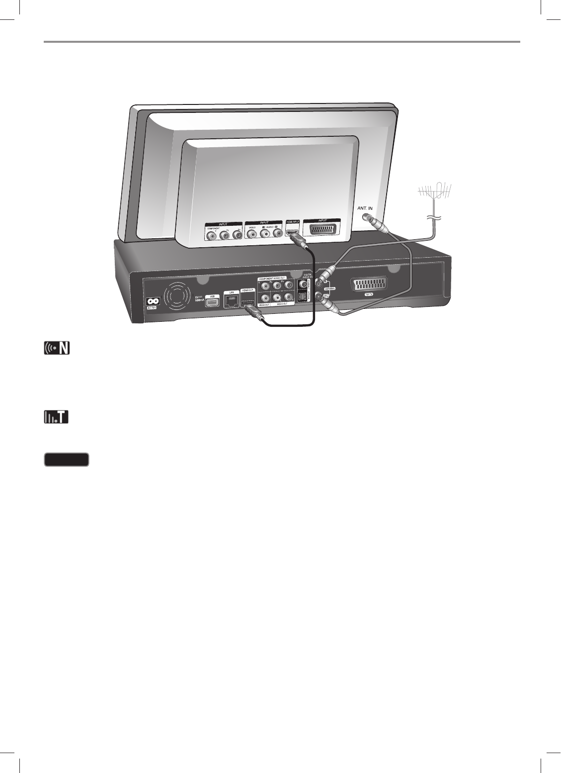 l If a connected HDMI device does not accept the audio output of the recorder, the HDMI device’s audio sound may be