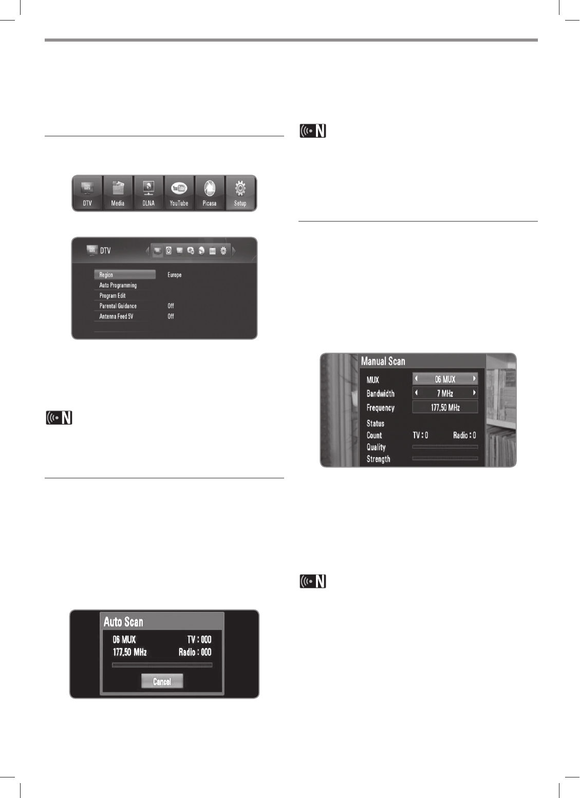 To use DTV functions, this recorder needs some settings in advance. You can make settings and adjustments using the