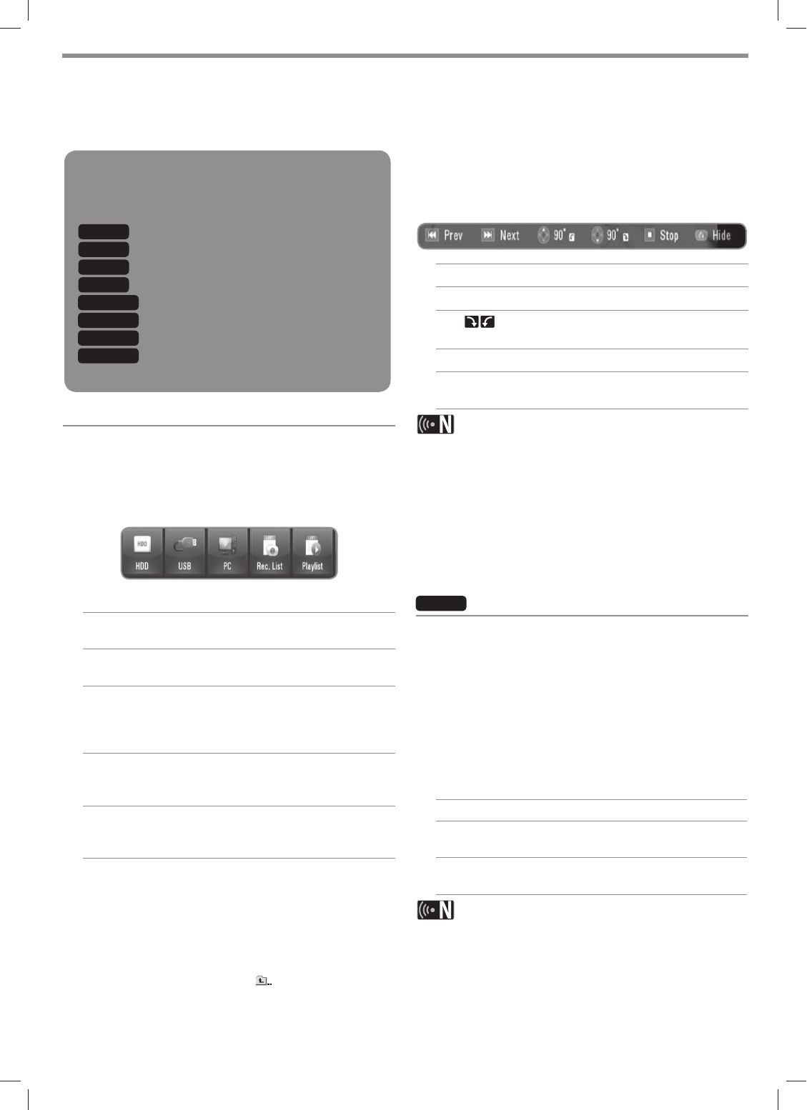 The recorder can play movie, music and photo files on the HDD, USB, PC, REC.List, Playlist or using DLNA feature.